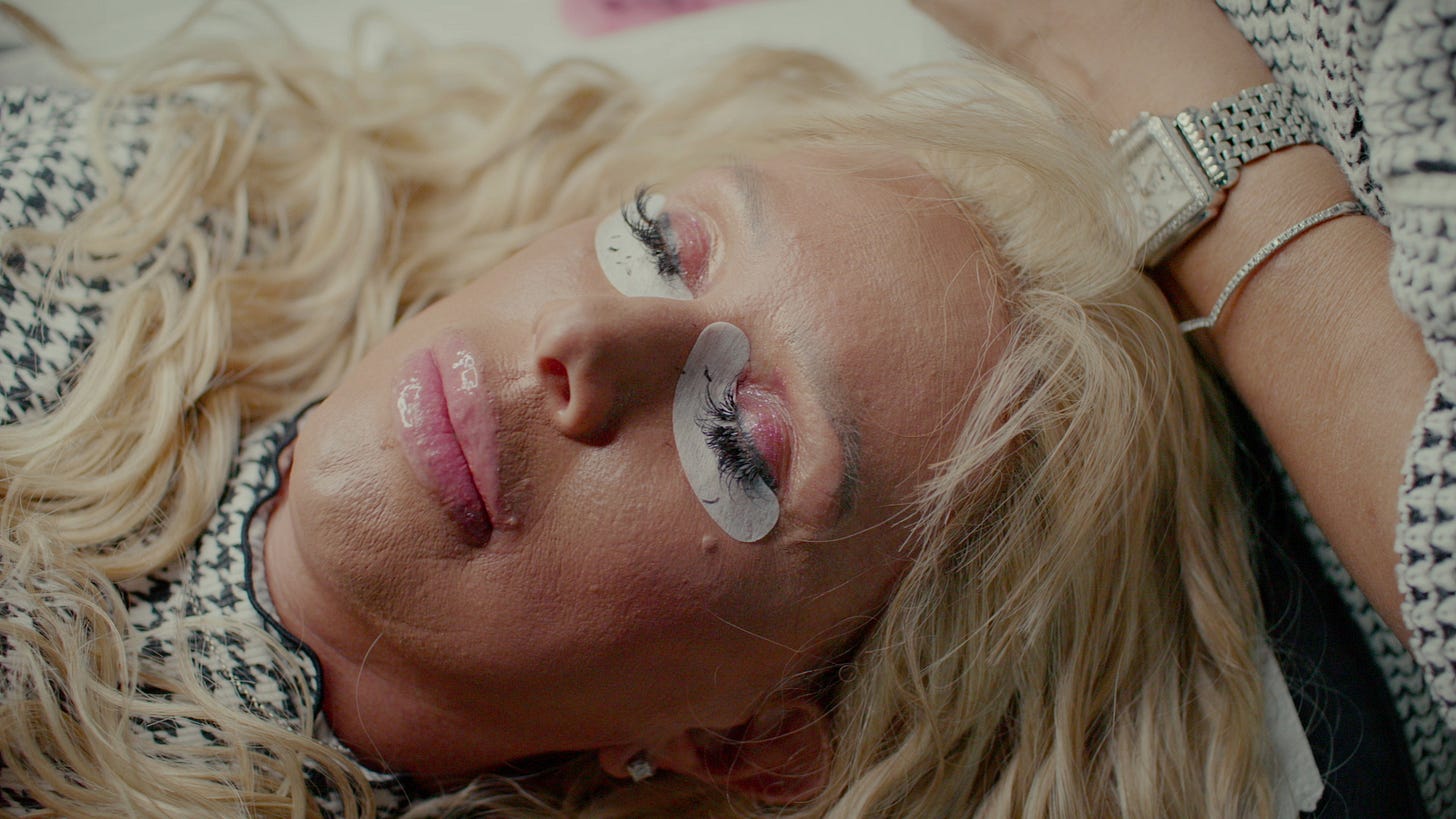 Charles Divak: The first thing I cut was the cold open for Episode 2, which was Tonia’s lip injection scene. I remember watching that and being like, “This is so weird. It’s just bizarre and dark.” And as soon as I saw it, I was like, “This could be a really cool cold open.” Because it resets what’s going on, and it does it in this non-intrusive way where you’re getting information without really knowing it. And it’s entertaining at the same time. That was the first thing I did. Then I ended up working on Episode 2, and I think Doug was consulting at the time.