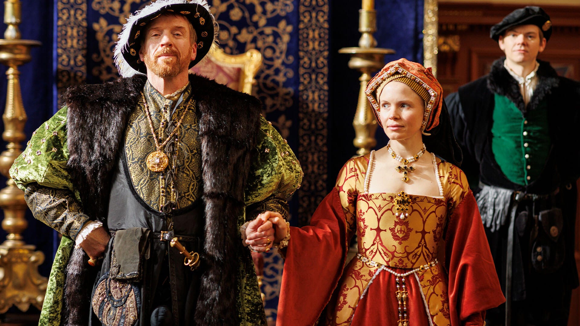 Eatwell also points out that Lewis enjoyed Henry’s costumes (even as he becomes increasingly incapacitated over the course of The Mirror and the Light). “ He, like most male actors, really enjoyed putting on the costumes because they are essentially so masculine,” Eatwell says. “They give you wonderful broad shoulders, big chest, and narrow little hips, and beautiful, finely turned calves. Men look like peacocks. They look so beautiful in these clothes.”